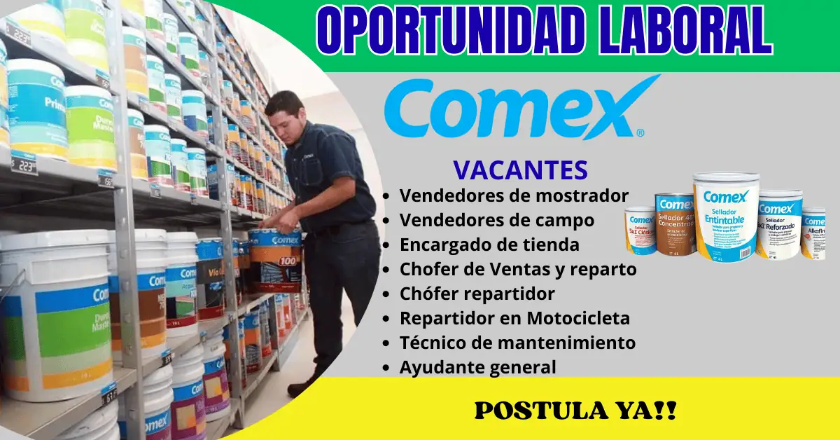 Conoce las vacantes COMEX 2026 con funciones, requisitos y beneficios. Oportunidades de crecimiento profesional, capacitación continua.
