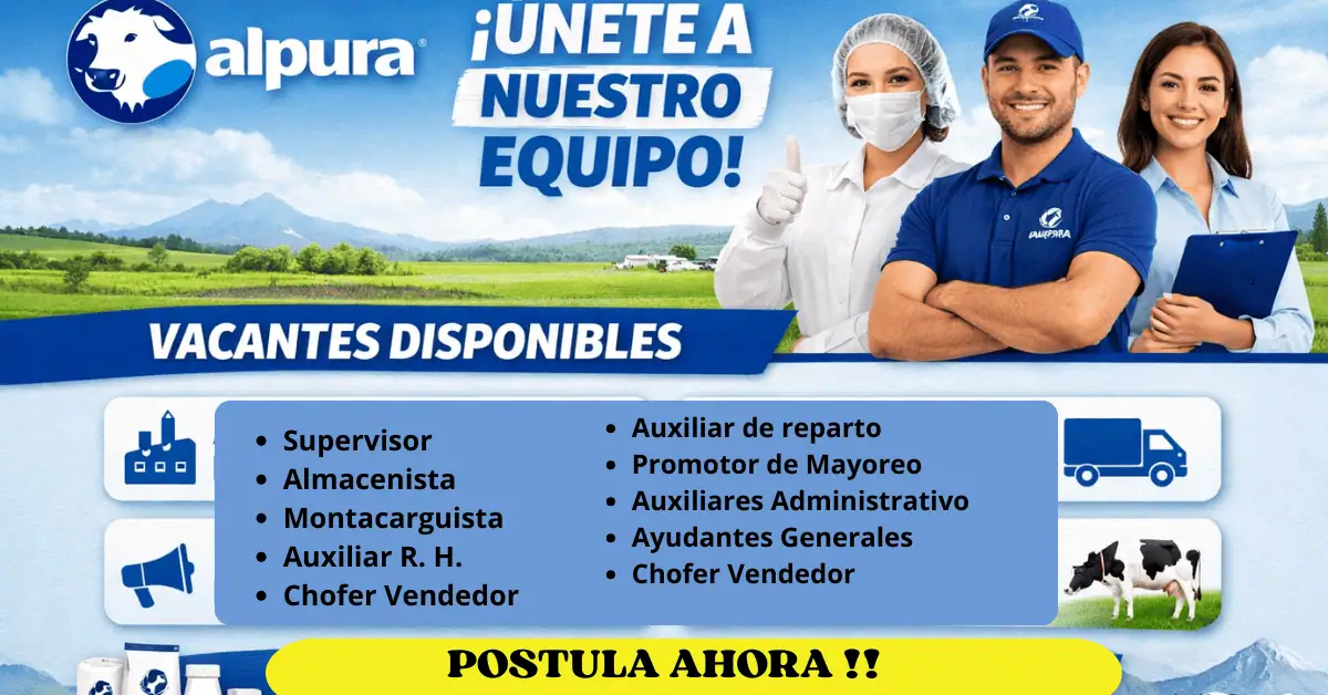 Descubre vacantes en ALPURA con funciones claras, requisitos definidos y beneficios competitivos, ideales para impulsar tu carrera profesional en una empresa líder del sector.