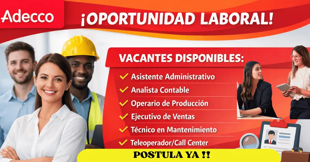 “Descubre vacantes en ADECCO con funciones claras, requisitos definidos y beneficios atractivos para impulsar tu crecimiento profesional.”